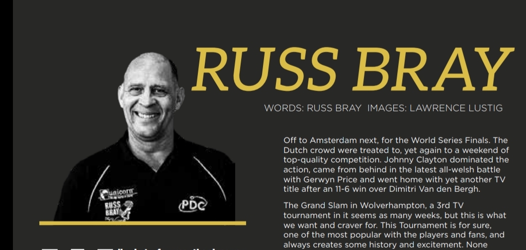 Off to Amsterdam next, for the World Series Finals. The Dutch crowd were treated to, yet again to a weekend of top-quality competition. Johnny Clayton dominated the action, came from behind in the latest all-welsh battle with Gerwyn Price and went home with yet another TV title after an 11-6 win over Dimitri Van den Bergh.