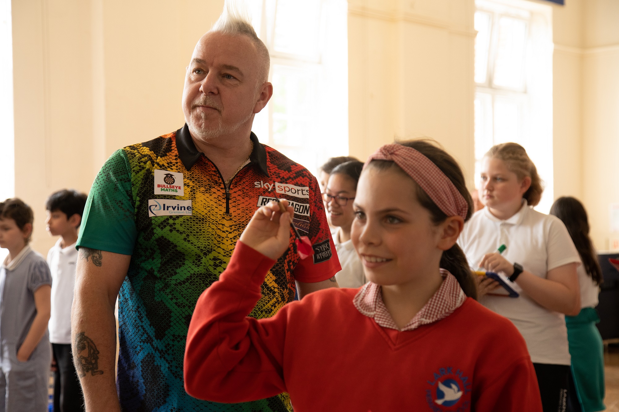 World Darts Champion Peter Wright visited Lark Hall Primary School in south London on Wednesday as part of the PDC’s Bullseye Maths programme.