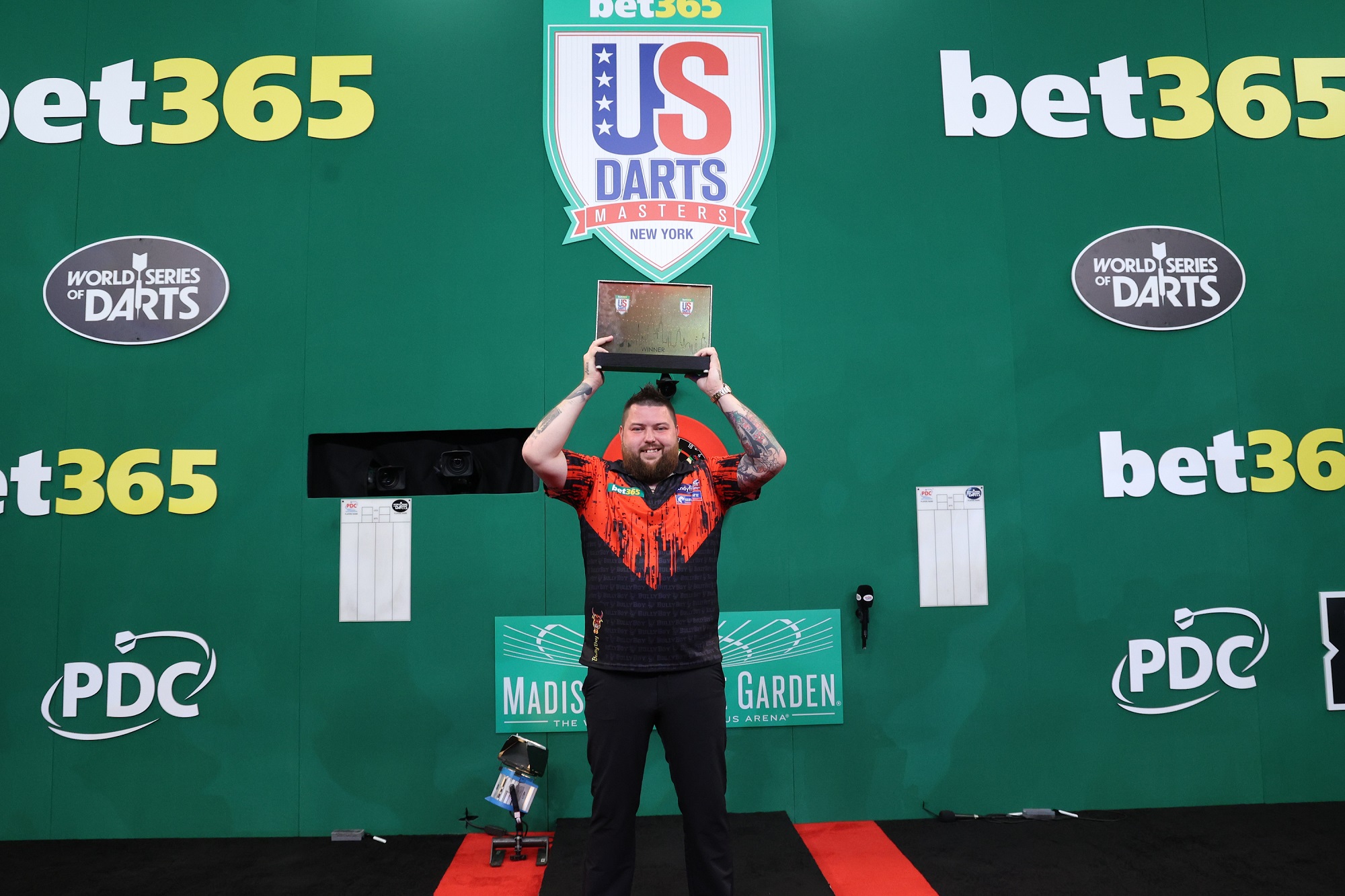 Michael Smith won his first bet365 US Darts Masters title in thrilling fashion on Saturday night, defeating Michael van Gerwen 8-4 in the final in the Hulu Theater at Madison Square Garden.