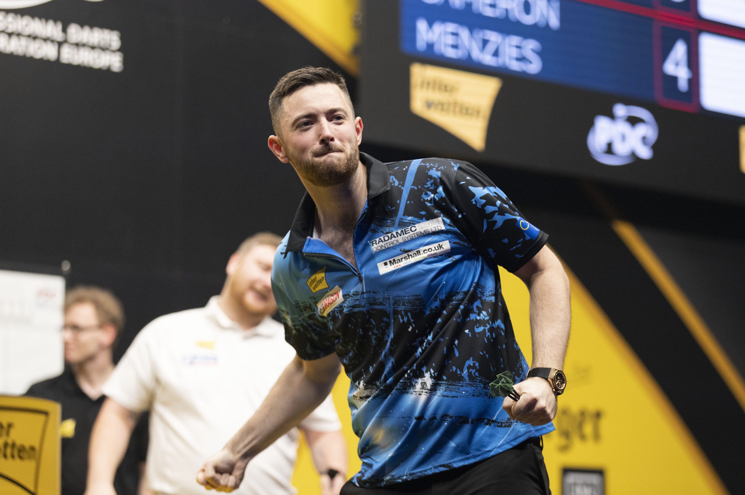 Luke Humphries, a three-time European Tour winner this year, defied a ton-plus average from Cameron Menzies to claim a 6-4 win as he moved through to a last 16 clash with Wenig.