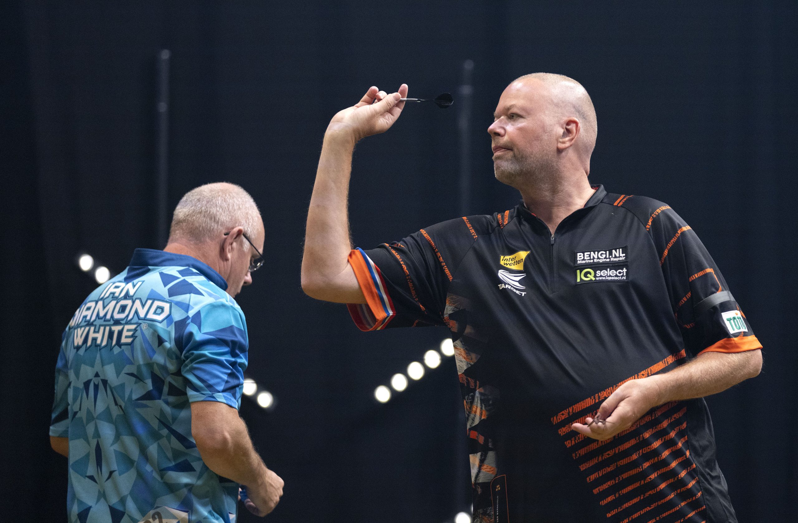 Dutch legend Raymond van Barneveld set up a clash of World Champions with Peter Wright at the Interwetten German Darts Open with a whitewash of Ian White in Friday’s first round in Jena.