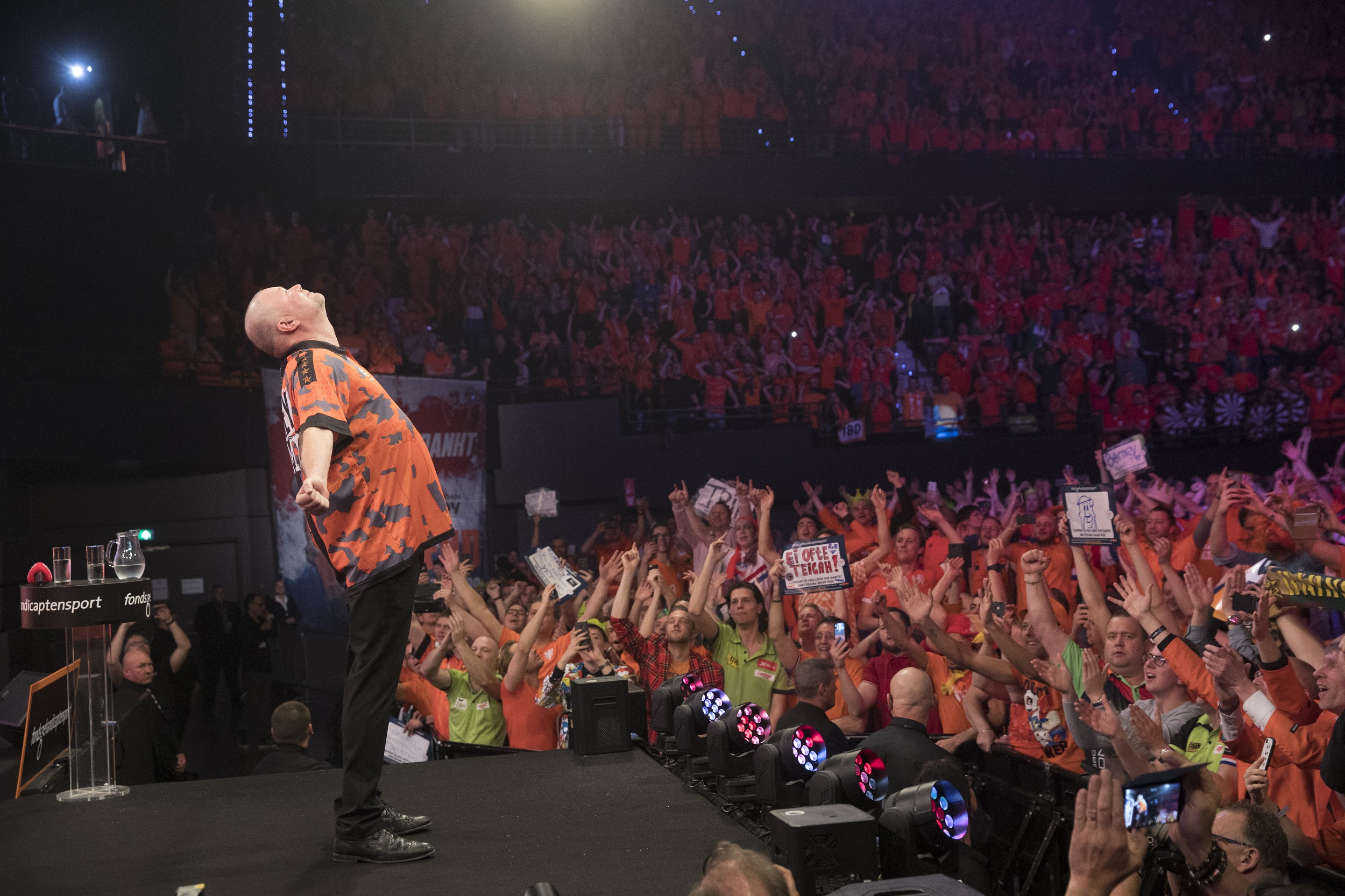 Already eliminated from the league, Raymond had one last match, against his great friend, rival and fellow Dutchman, Michael van Gerwen and it was in a packed Ahoy Arena in Rotterdam where it seemed that all but a few were wearing Orange shirts, the majority adorned with the name Barney.
