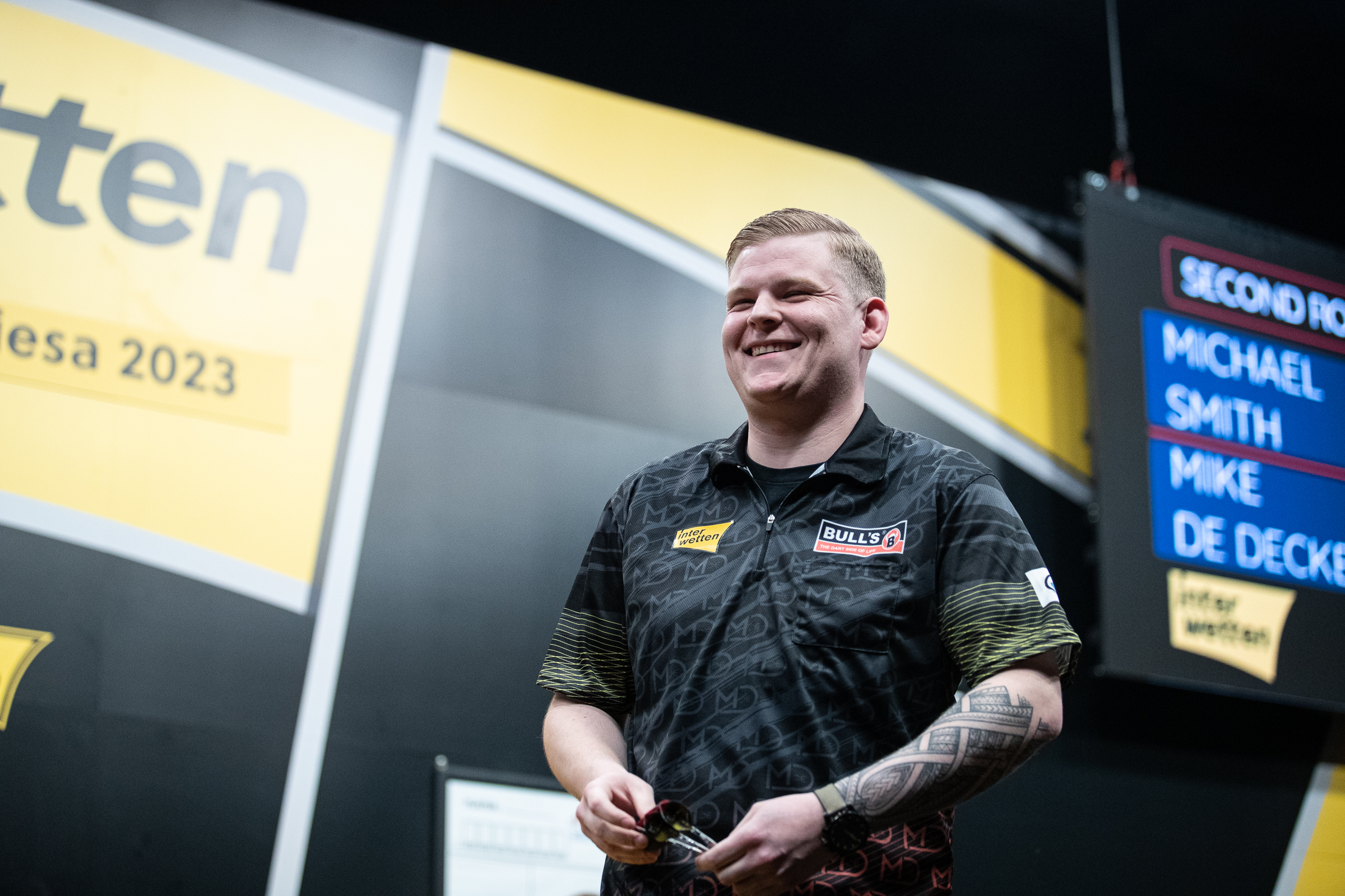 World Champion Michael Smith was a shock casualty on Day Two of the 2023 Interwetten International Darts Open, as he crashed out 6-1 to Mike De Decker in Riesa on Saturday.