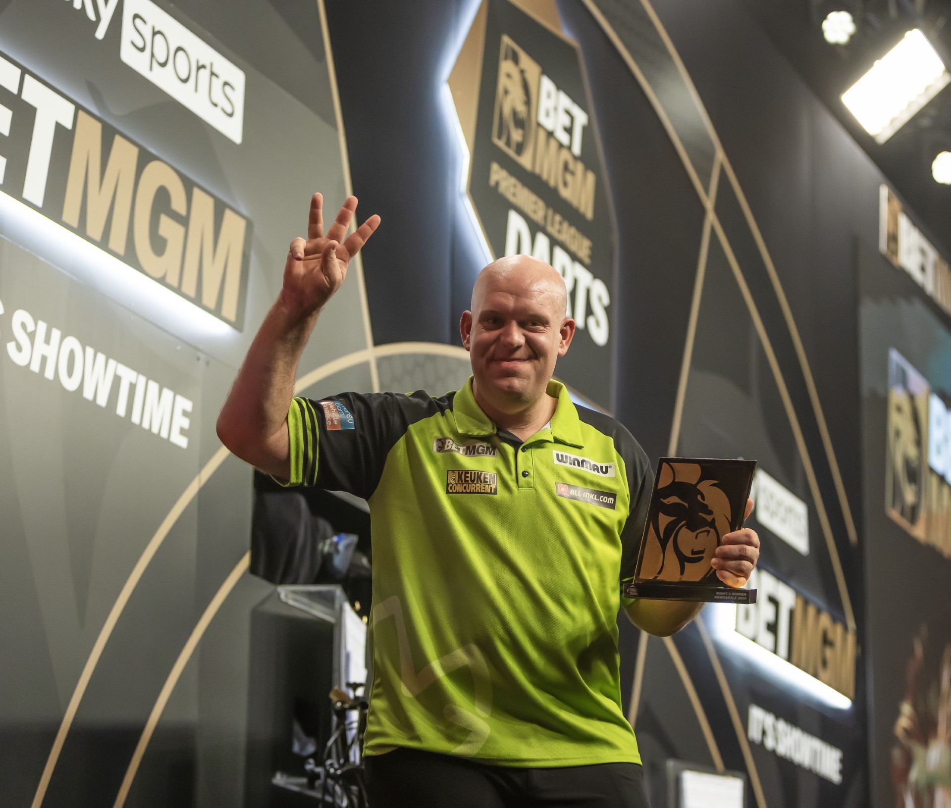 Michael van Gerwen stormed to a third consecutive nightly win in the BetMGM Premier League with a 6-4 success against Nathan Aspinall in Thursday’s Newcastle final at the Utilita Arena.