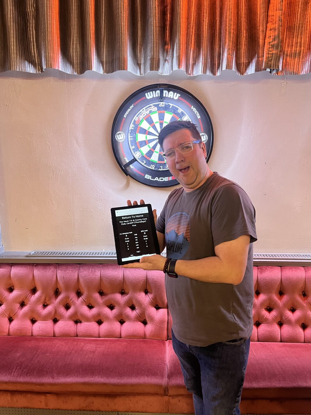 I was surprised with my win as the picture shows. Overall it was nice to play darts how I use to, and once again thanks to all who made it a great night at the County Conservative Club in Cardiff.