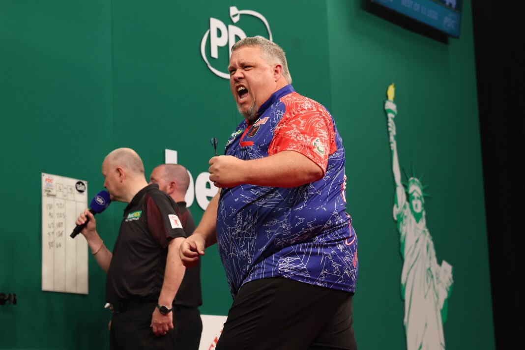 The Indiana-born left-hander has lost three times previously in the US Darts Masters first round, and admitted: “That was amazing. Every win is difficult; I’ve not had a whole lot of stage experience this year so there’s nothing but positives.