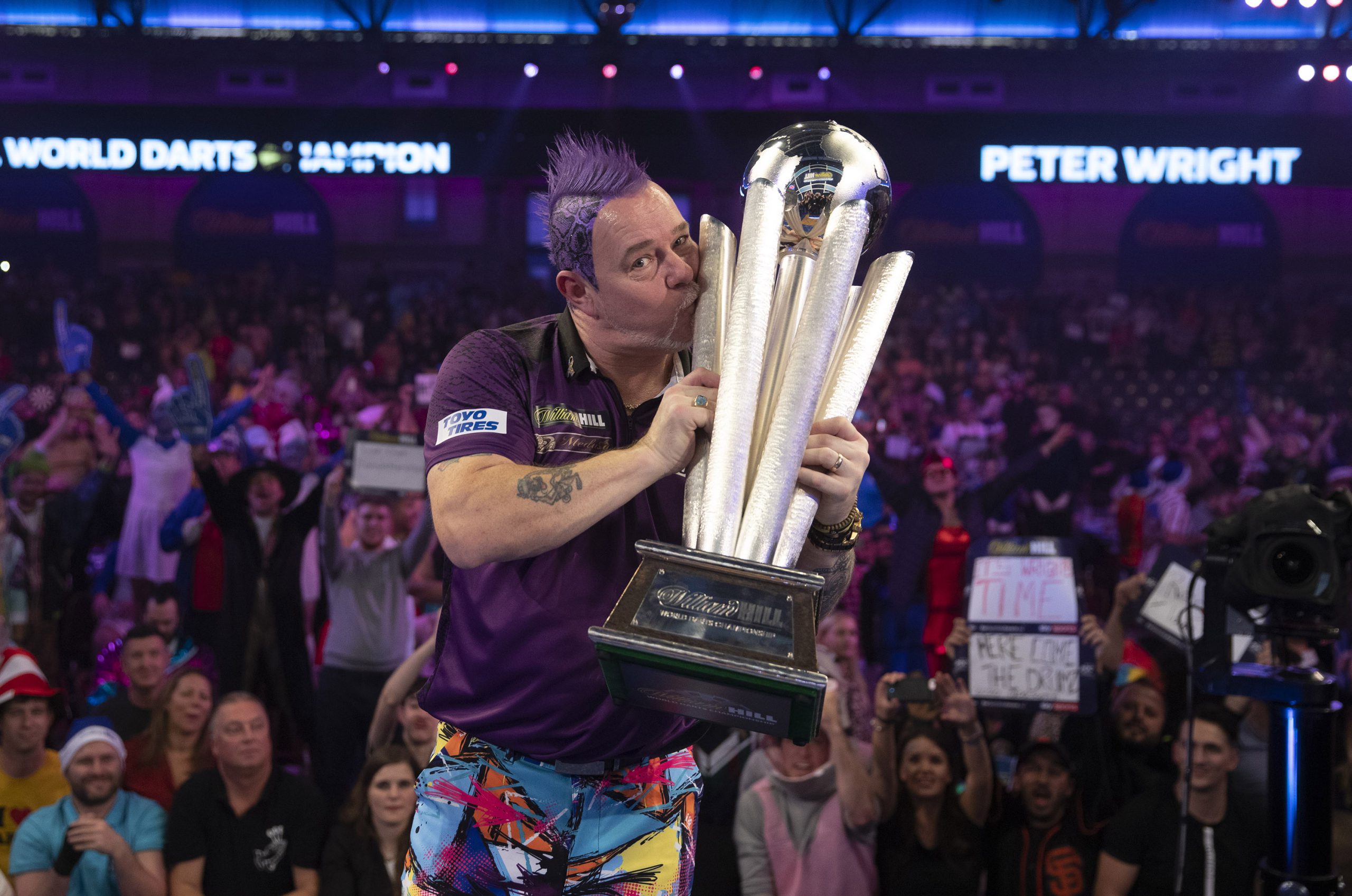 Peter Wright is a true icon of modern darts – a flamboyant performer and twotime world champion whose stage presence and skill have made him a fan favourite. Working as a builder and tyrefitter, he first competed in the BDO before switching to the PDC in 2004. His early career was steady, but his breakthrough arrived when he claimed his first televised PDC major title in 2017 by winning the UK Open.