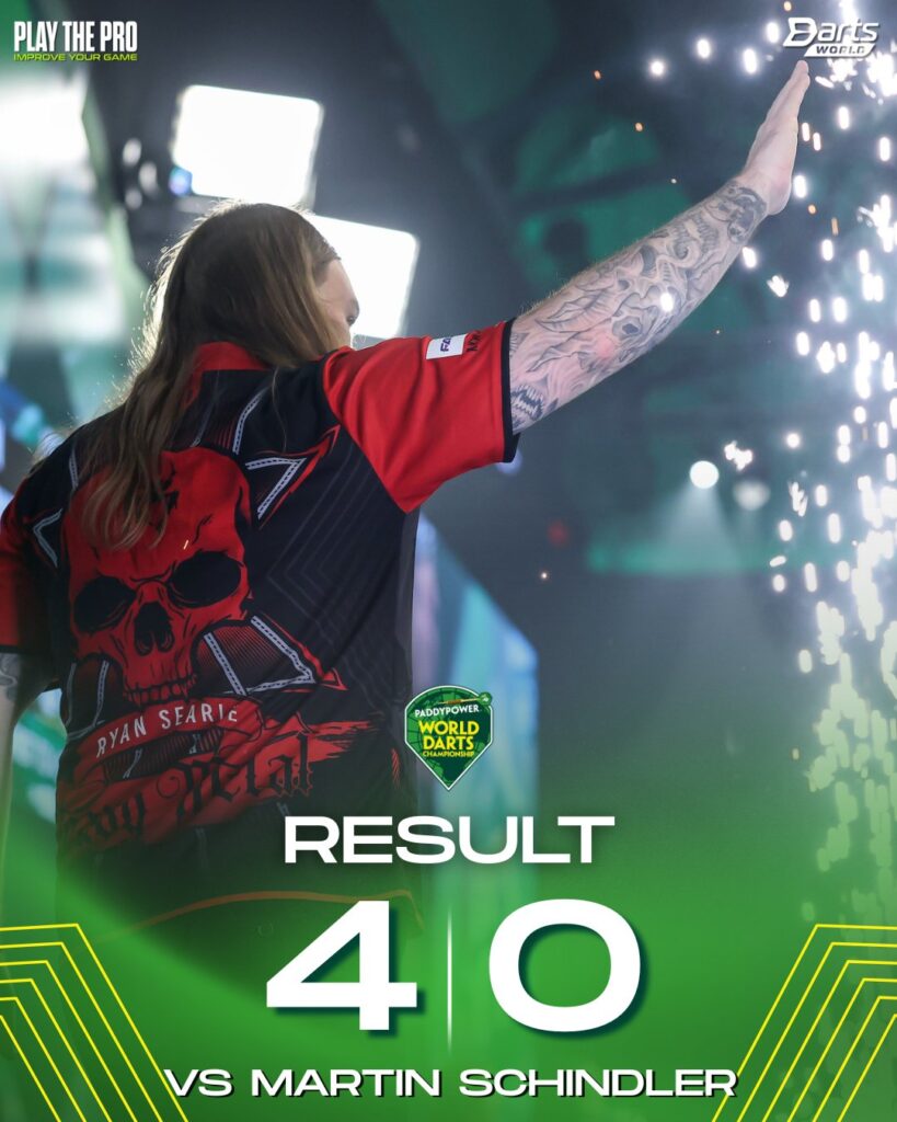 Elsewhere, when Heavy Metal meets a Wall, the outcome is rarely subtle. Ryan Searle obliterated Martin Schindler with a performance of sheer dominance. After nicking the opening set against throw and recovering from a slip in the second, the Devonian detonated. Nine unanswered legs. Ton-plus average. One-way traffic. Brutal efficiency. Now awaits James Hurrell.